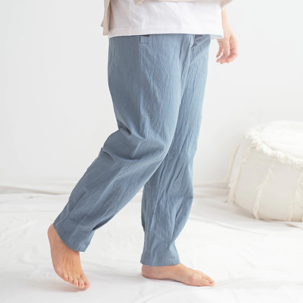 Nuestro TENSHI azul acero unisex está confeccionada en 100% lienzo de algodón, tiene botamanga, bolsillos a los costados, bolsillos amplios detrás con estampa en serigrafía y a contratono el color del hilo.